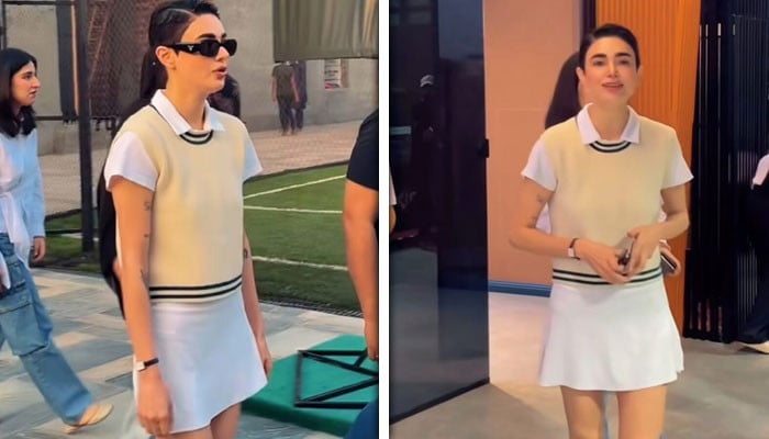 اداکارہ تقریب میں نئے شارٹ پکسی ہیئر کٹ کے ساتھ جلوہ گر ہوئیں جبکہ ان کا مغربی طرز کا لباس بھی لوگوں کی خصوصی توجہ کا مرکز بنا، اُنہوں نے سفید رنگ کی شرٹ کے ساتھ منی اسکرٹ زیب تن کیا تھا۔